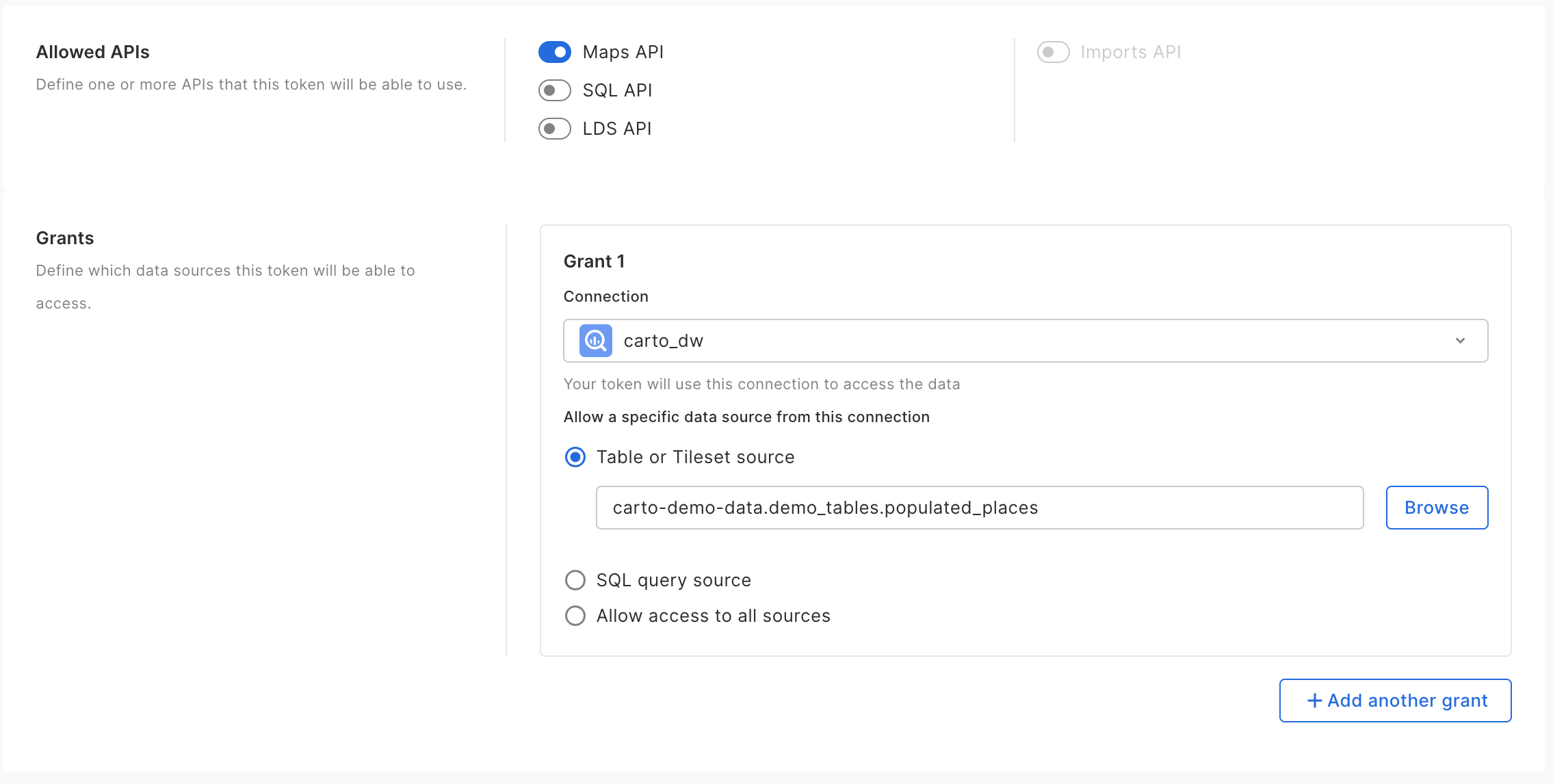 * Creating an [API Access Token](https://docs.carto.com/carto-for-developers/key-concepts/authentication-methods/api-access-tokens) with limited access to your data warehouse.
