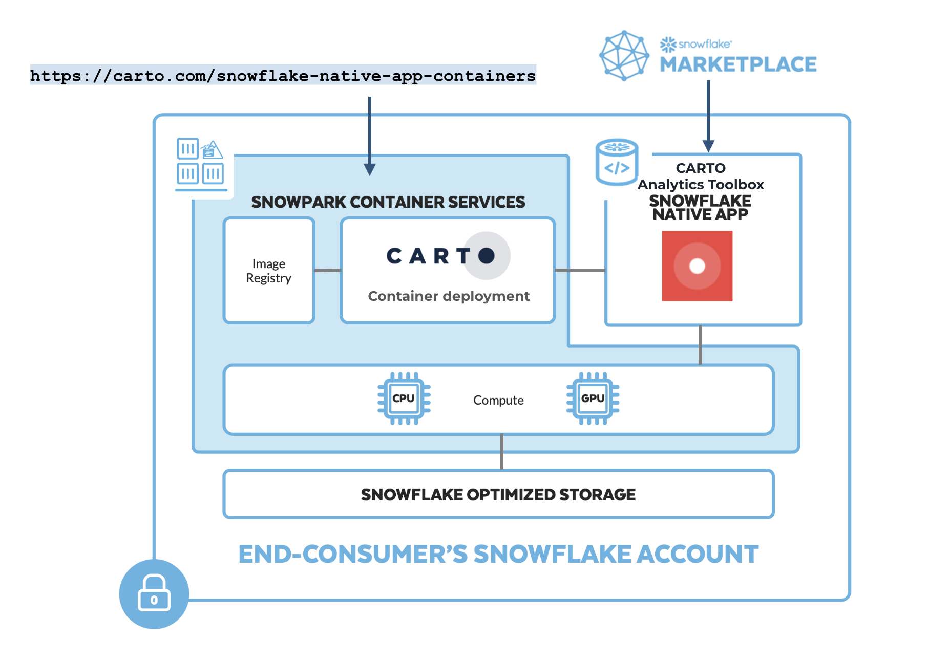CARTO can be fully deployed within Snowflake as a Native App, using Snowpark Container Services.