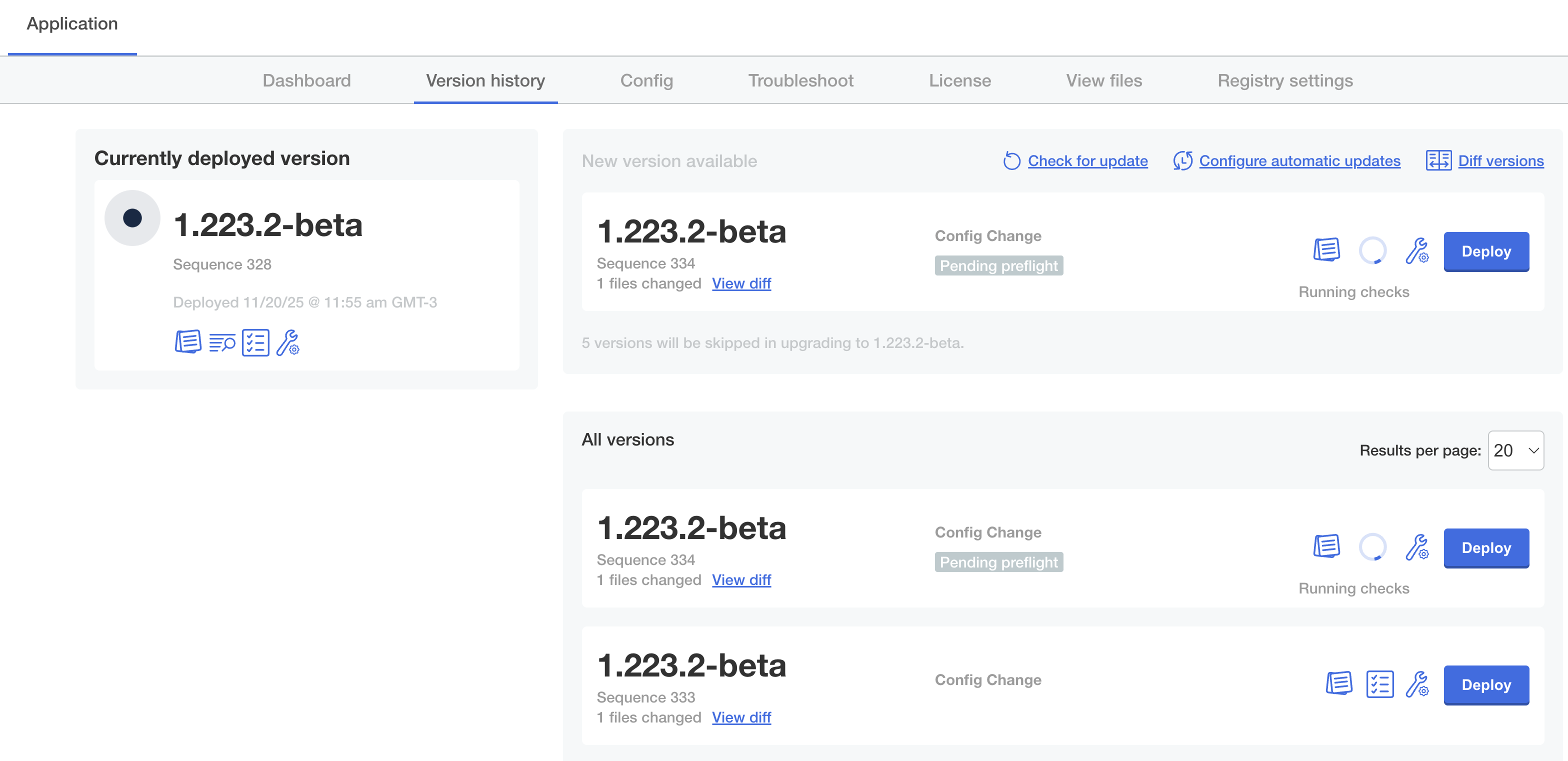 KOTS will automatically run preflight checks to ensure connectivity and requirements are met.