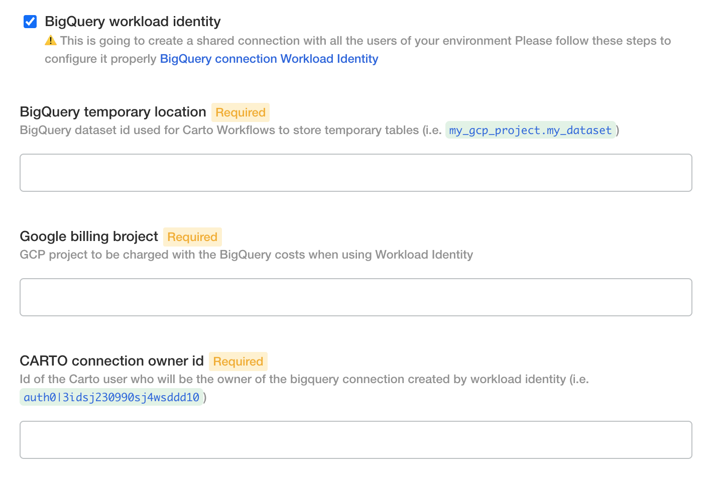 In order to enable Workload Identity in your CARTO Self-Hosted installation, you'll have to follow these steps: