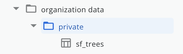 The private dataset is a unique dataset for each user, and all the tables and tilesets in this folder will **only be available to that user**. Private datasets have a unique qualified name that identifies the user, extracted from their email.