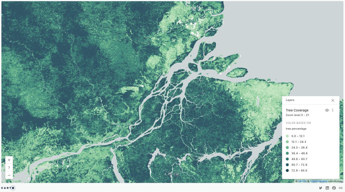 Raster data plays a critical role in geospatial applications, enabling the visualization and analysis of spatial patterns, trends, and relationships. CARTO provides end-to-end support for raster data, allowing users to store, analyze, and render raster datasets directly in their cloud data warehouses.