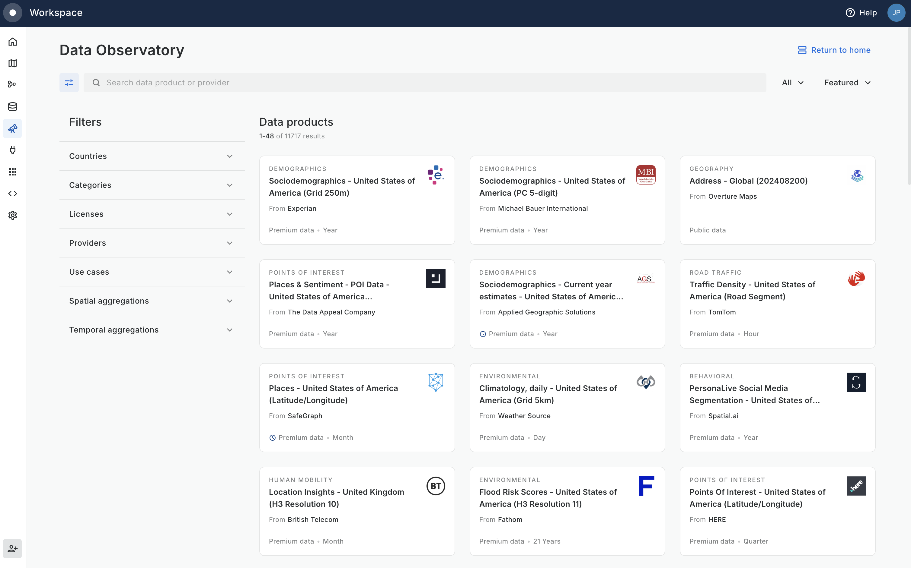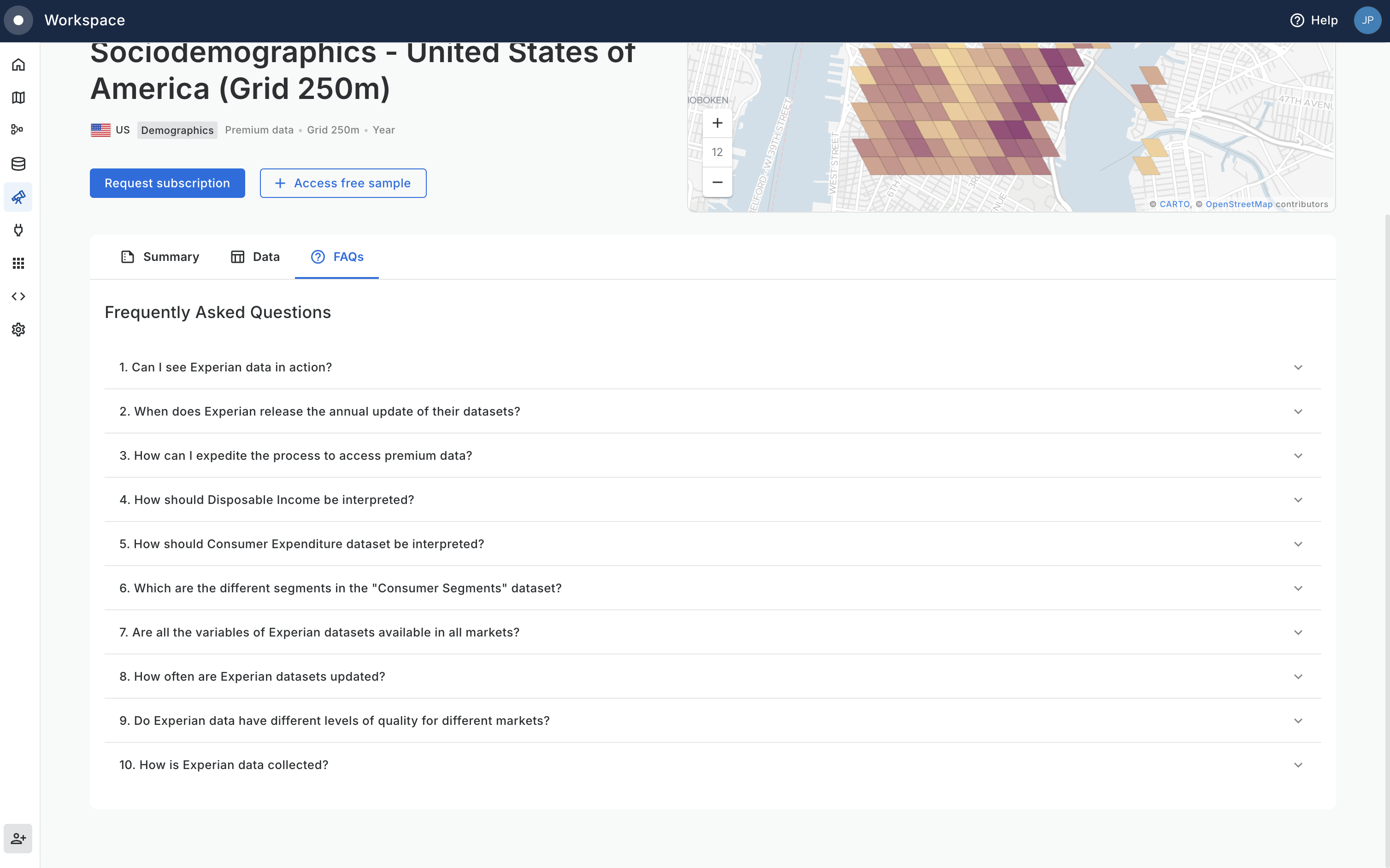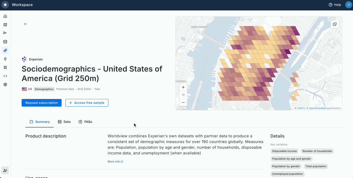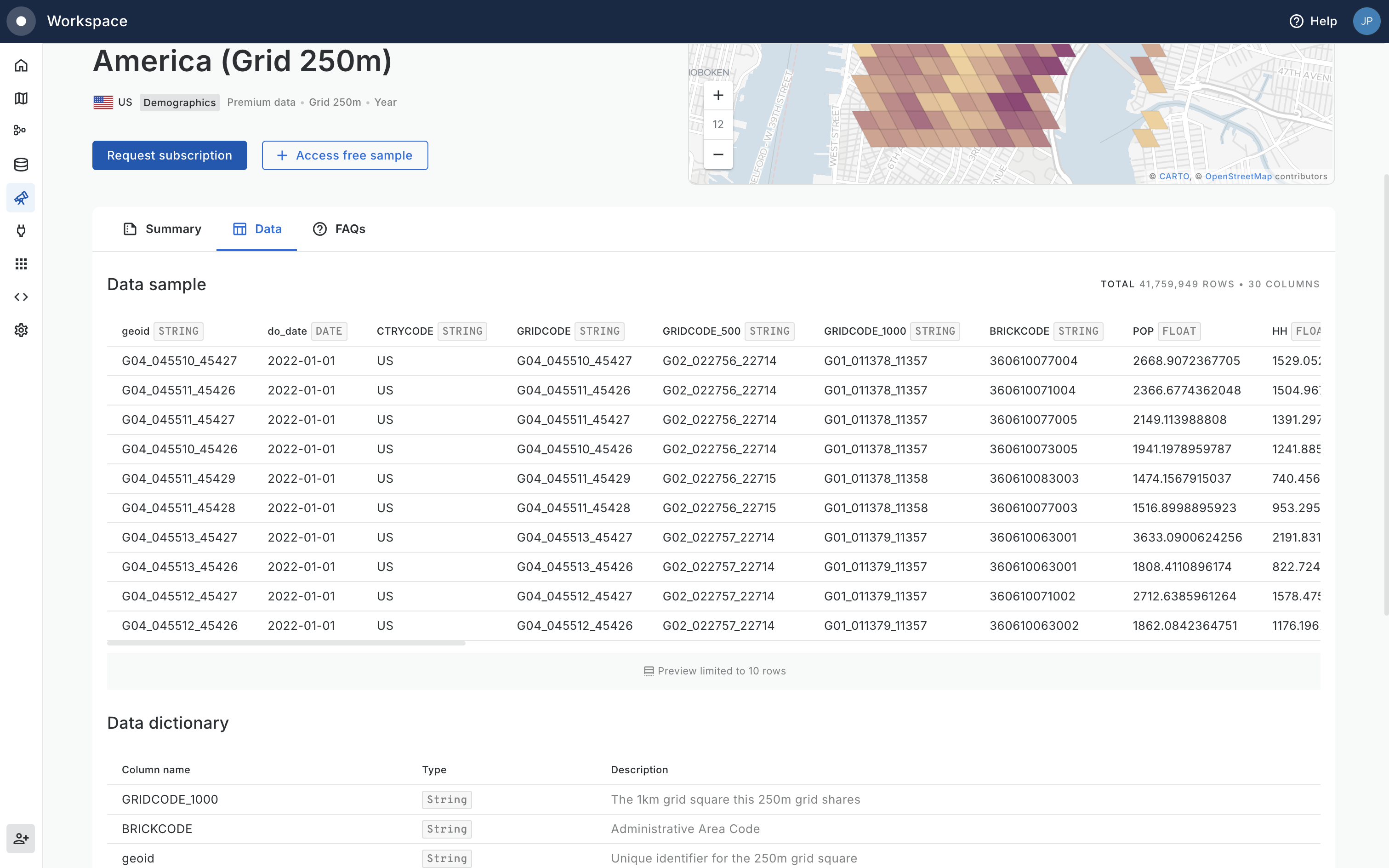 CARTO’s Spatial Data Catalog allows users to explore the specifications of thousands of spatial datasets available via the Data Observatory, in order to find the best data based on their requirements.