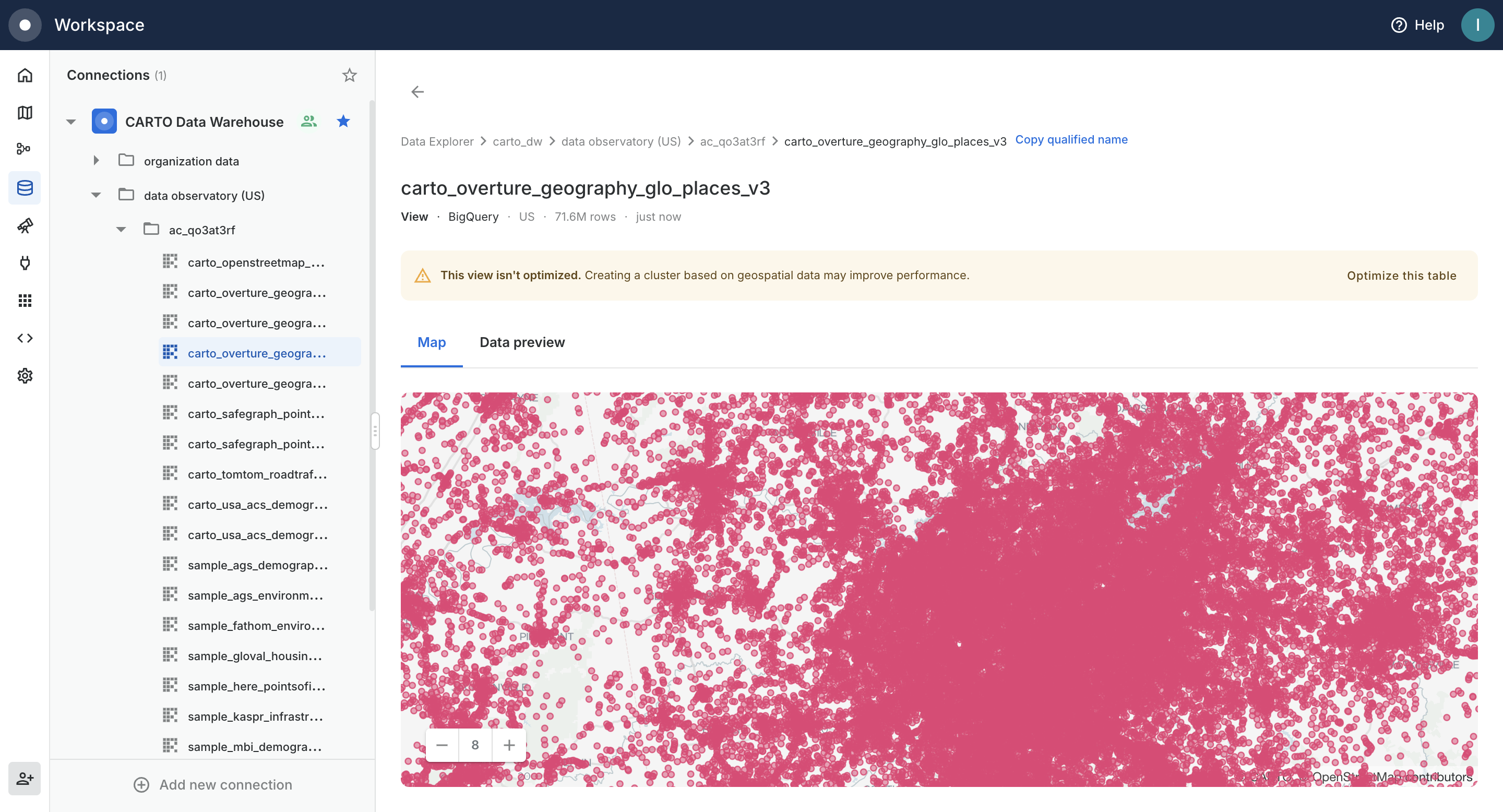 After clicking on *View data* you will be redirected to the [Data Explorer](https://docs.carto.com/carto-user-manual/data-explorer), from where you will be able to browse your dataset like any other.