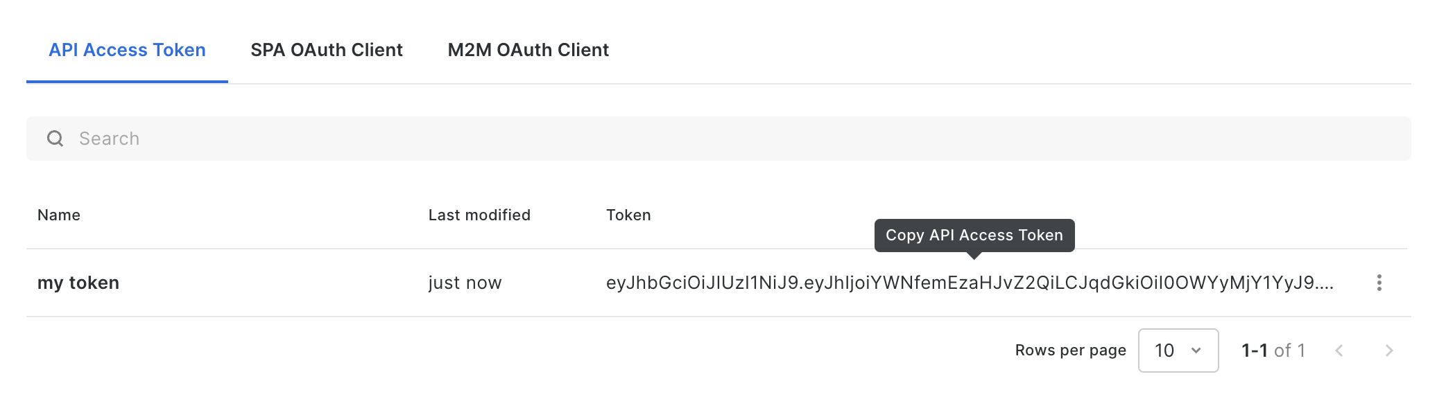 After you create your first API Access Token, you will be able to view the list of existing tokens for your own user. API Access Tokens created by other users aren't shown in this list.