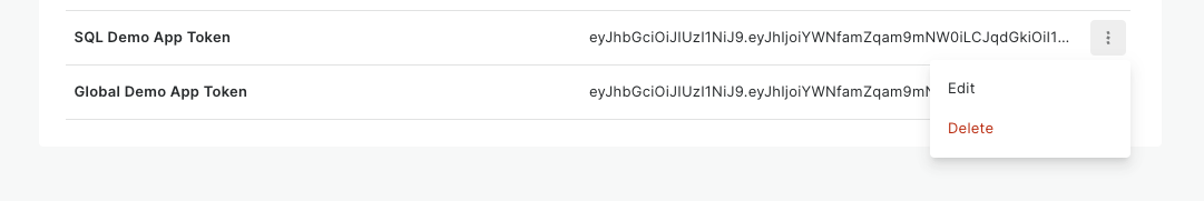 ### Editing and deleting tokens
