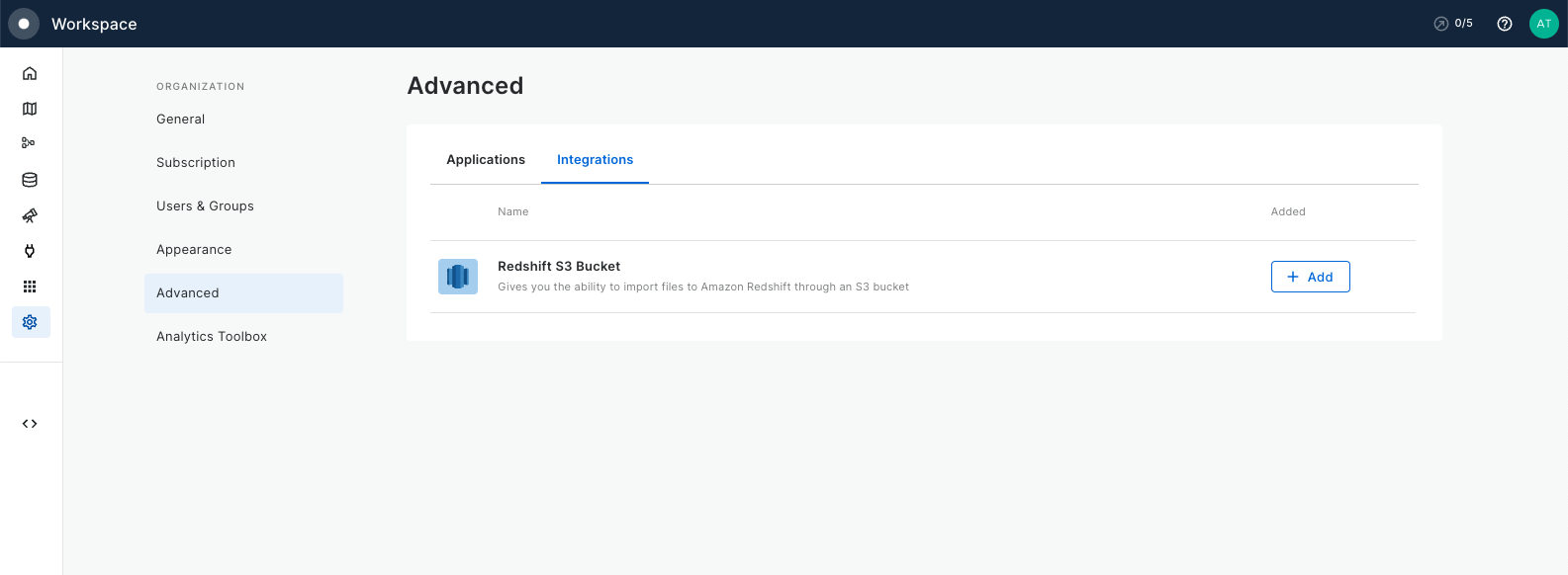 In **CARTO Self-Hosted** organizations you need to configure this setting to be able to import geospatial files into Redshift using CARTO.