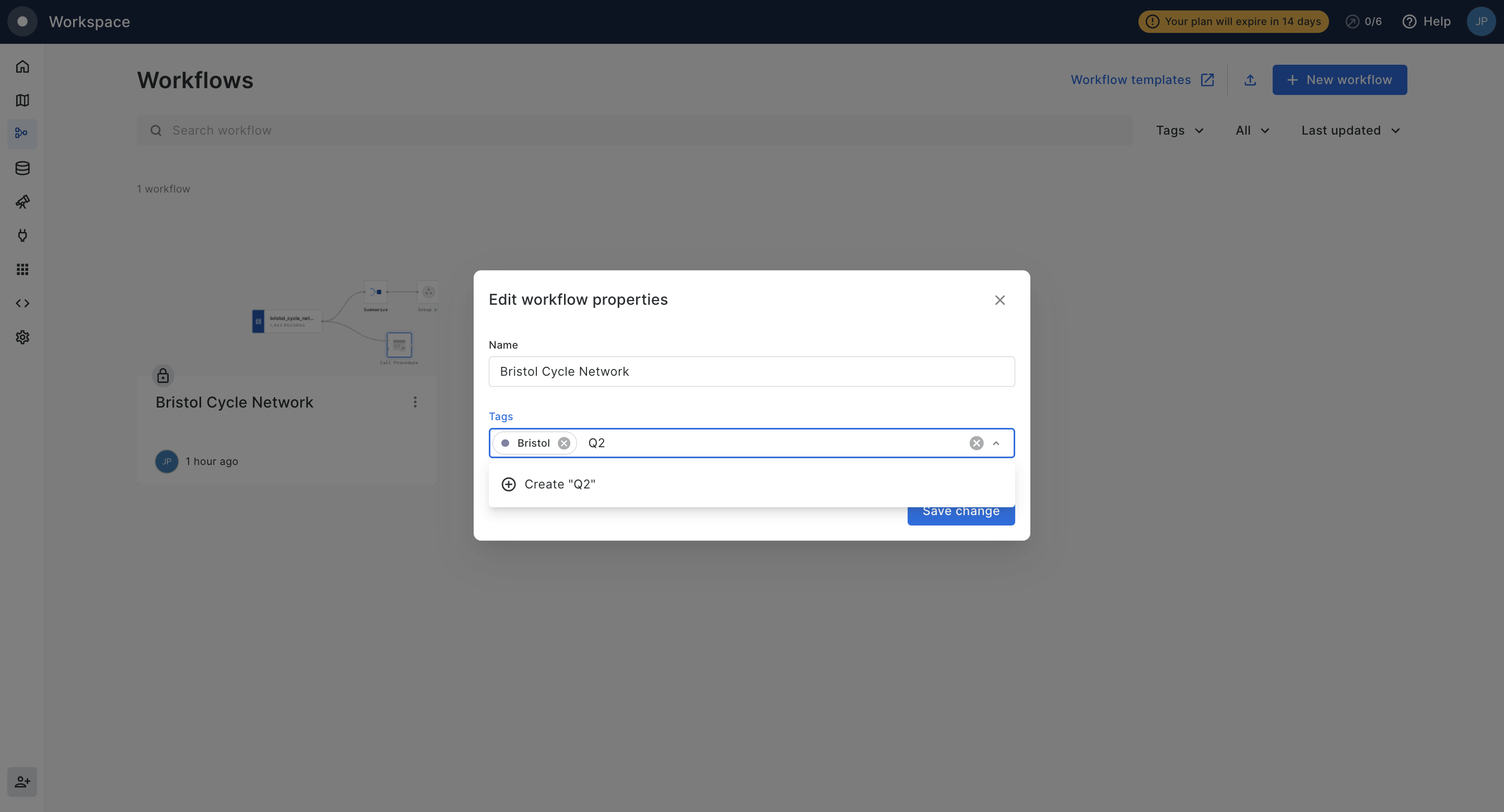 You can tag workflows from the Workspace by editing their properties: