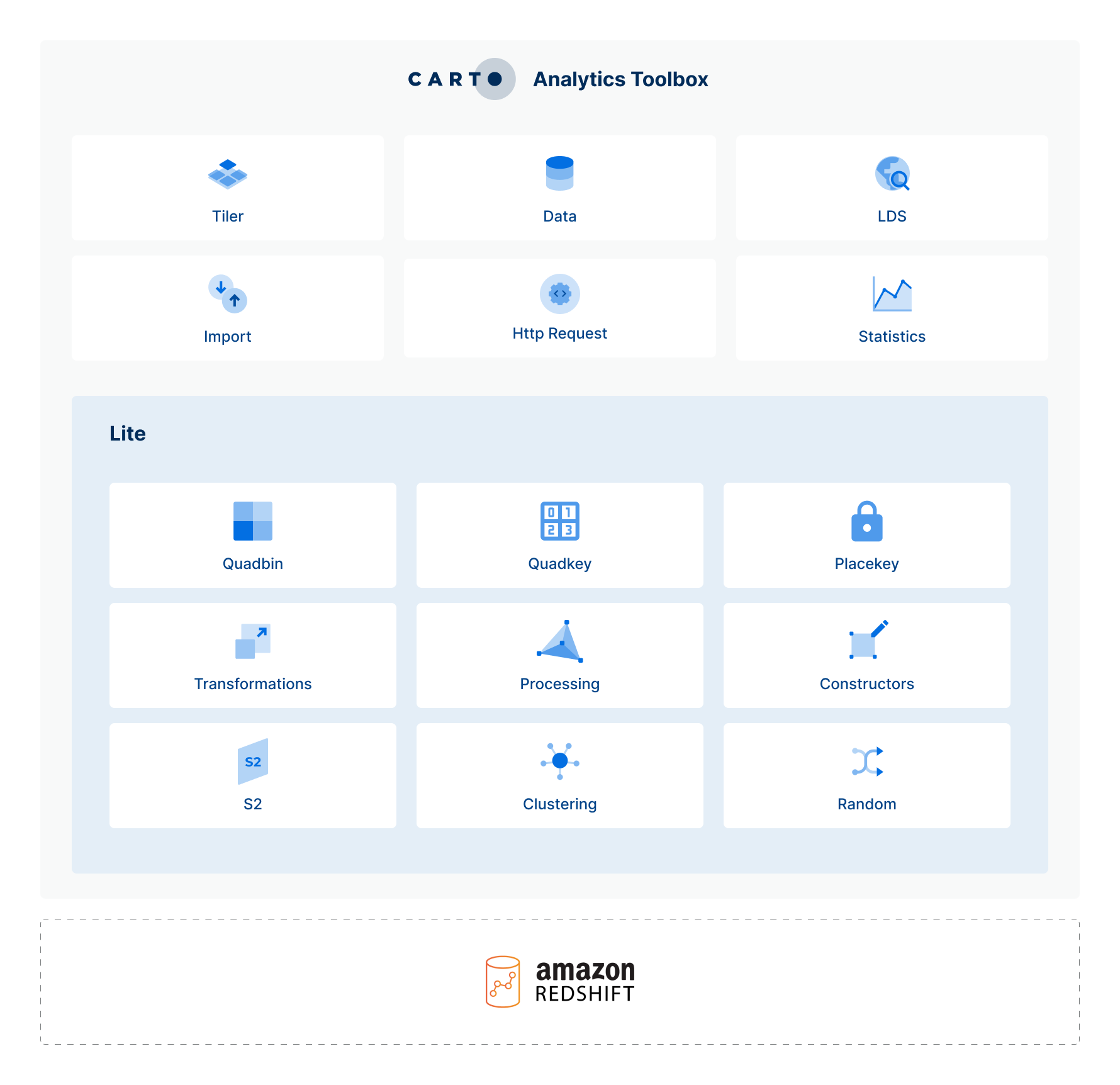 The CARTO Analytics Toolbox for Redshift is composed of a set of user-defined functions and procedures organized in a set of modules based on the functionality they offer. There are two types of modules: core modules, which are open source and advanced, only available for CARTO customers.