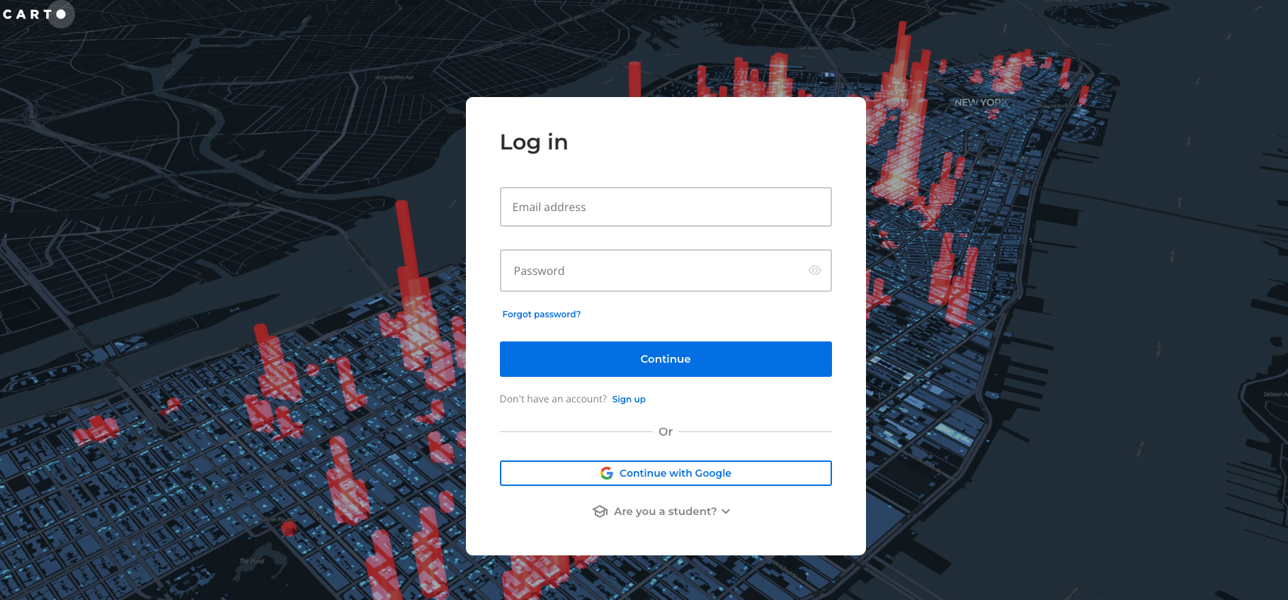 “CartoAuth. from\_oauth()” call will open a tab in your browser (or give you a link to access a URL) to login to your CARTO account.